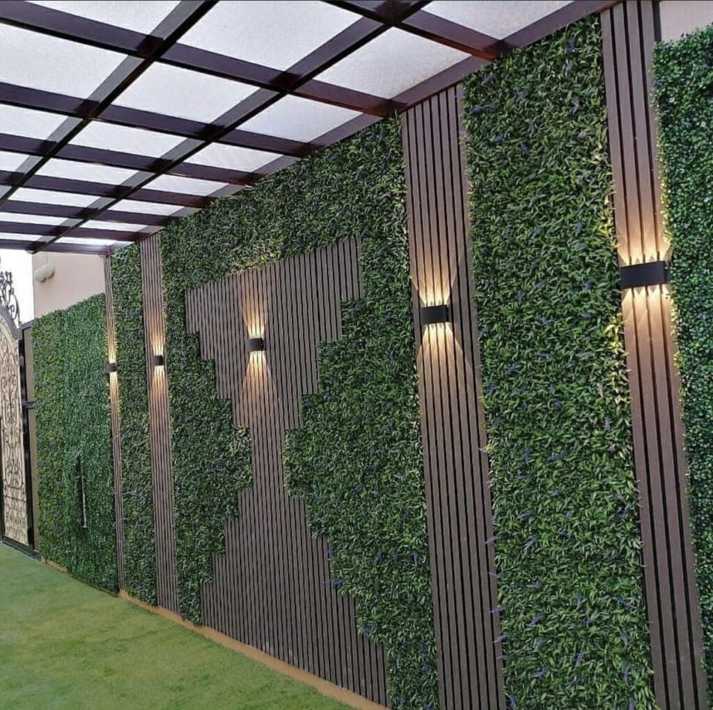 - إمكانية دمج العشب الجداري مع الديكورات الخشبية أو الإضاءة الجمالية لنتائج أكثر فخامة.
